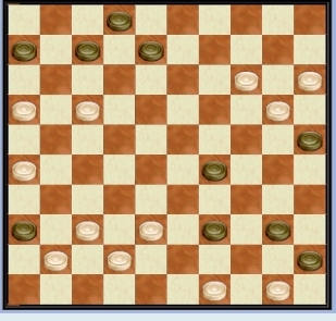 G. Andreev, 6 points {It is necessary to clarify the arrangement of the checkers and the solution.}