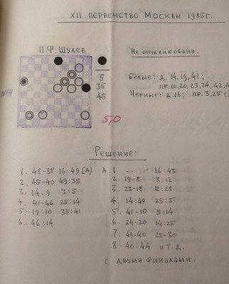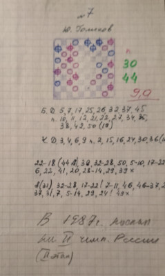 1.17-12 24x31 2.35-30 27x49 3.30-24 49x19 4.34-29 23x43 5.12x05 16x27 6.05x26 x 1-0 The end game is inaccurate (Comment from the author of the article)