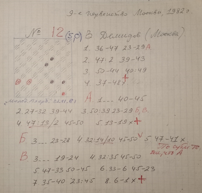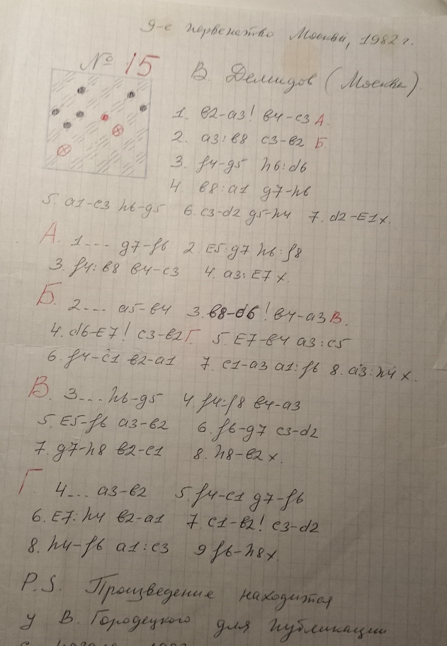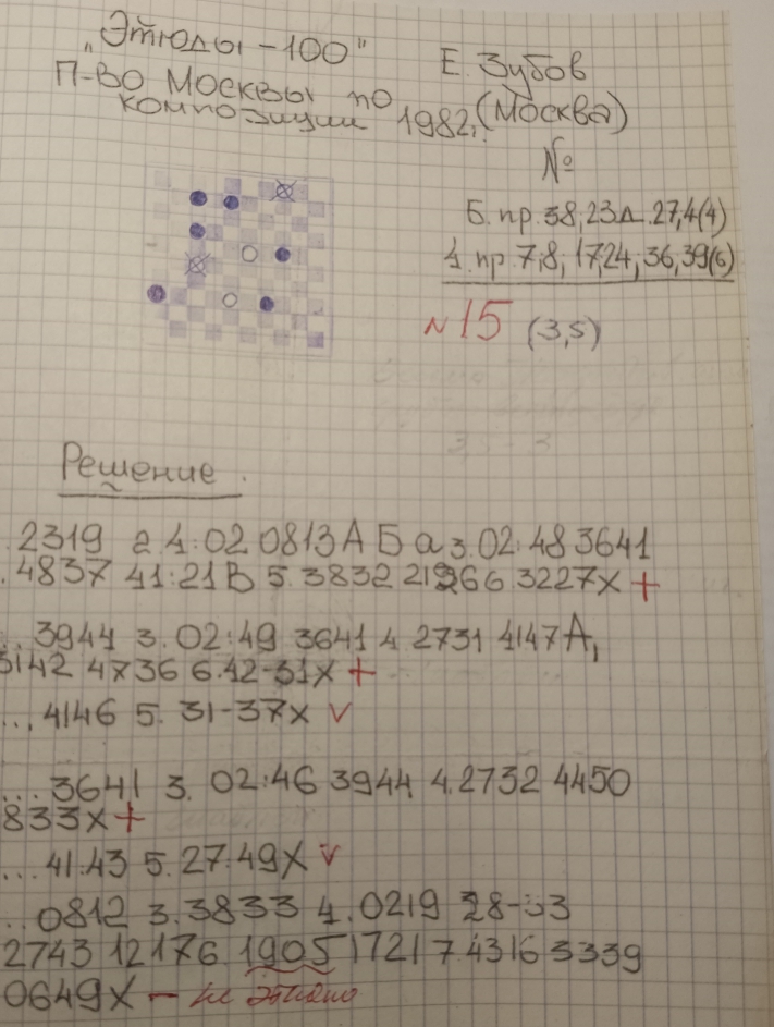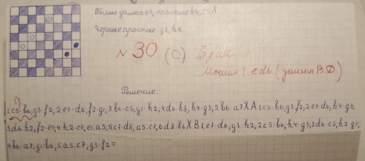This is a copy of the Yu. Cherniaev etude from "Dambrete"-mag. , No. 8 , 1977