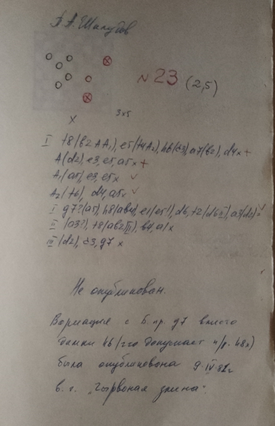 A. Fedoruk wrote : J. Viergevier's etude is a weak ideological predecessor, since it has only three standard variants 25(13) A, 9(10) B, 20(37) B, 9,14,24 B (26), 24(10), 8x B (14), 29/38, 29-34x