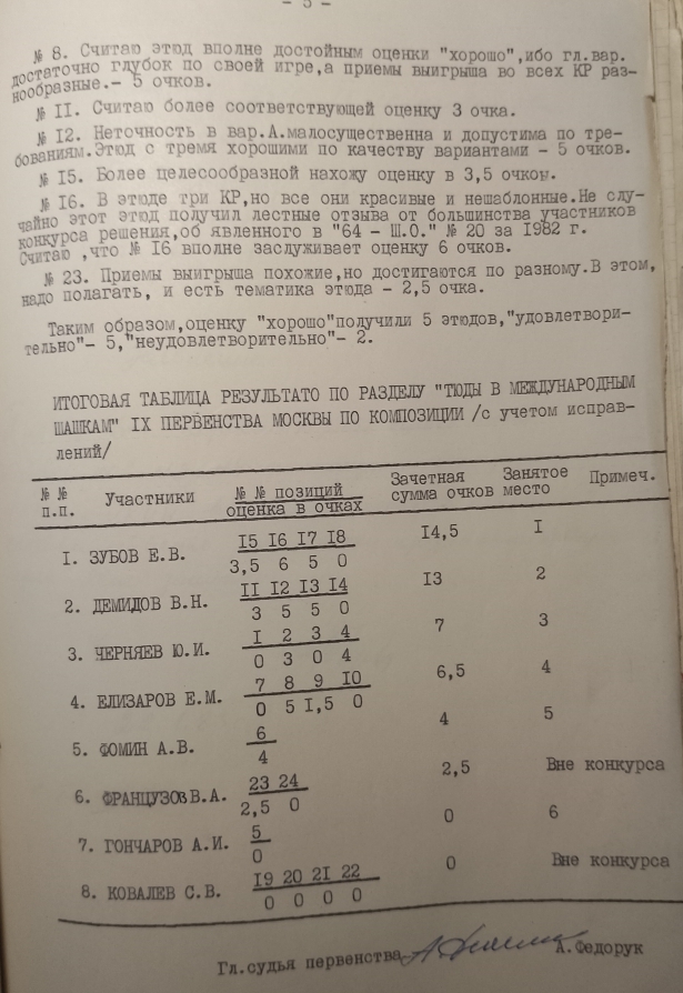 Results of the 9th Moscow Championship on draughts composition in the section "Etudes-100" (by A. Fedoruk).