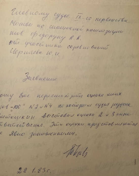 Yu.Cherniaev wrote a protest towards the scores of the judge Leonid Vitoshkin