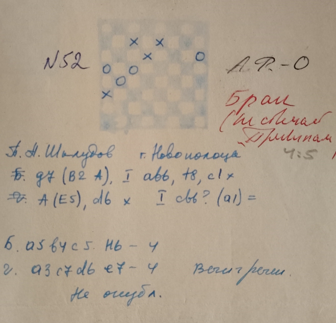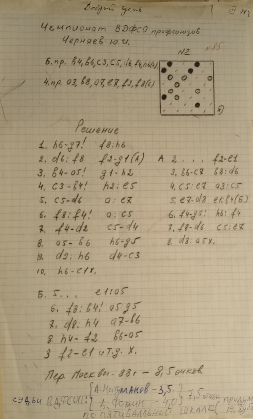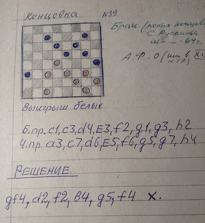 This is a copy of the Yu. Cherniaev etude from "Dambrete"-mag. , No. 8 , 1977