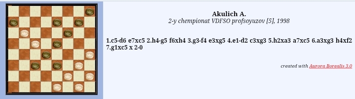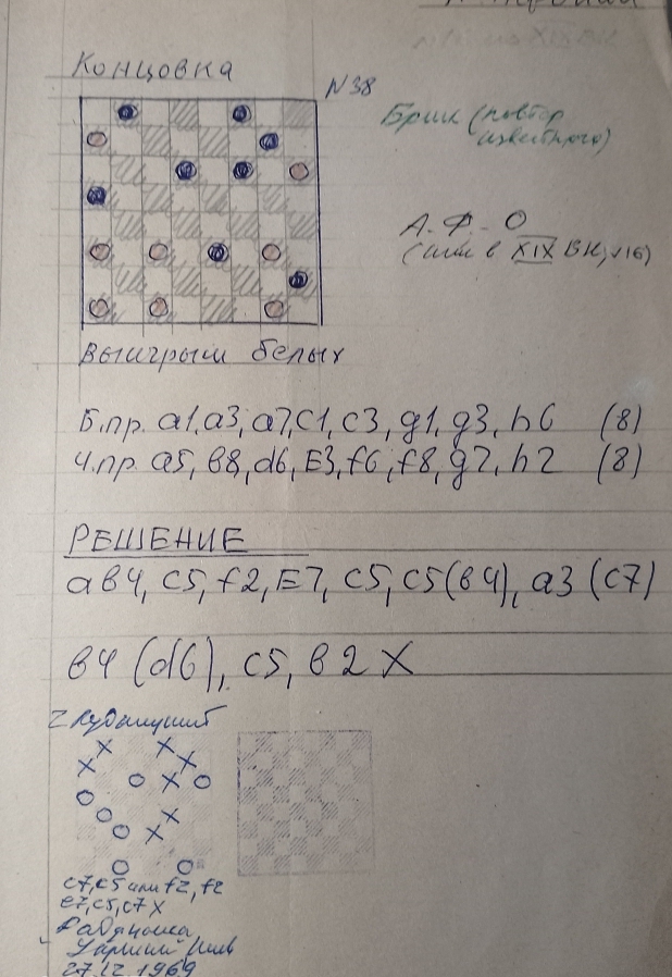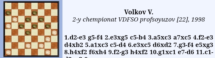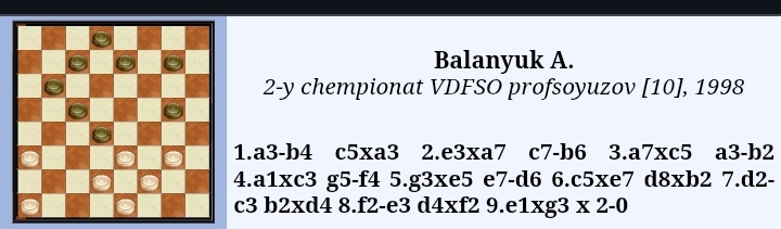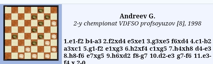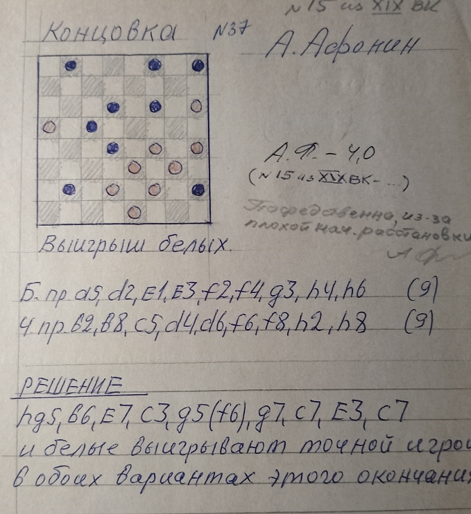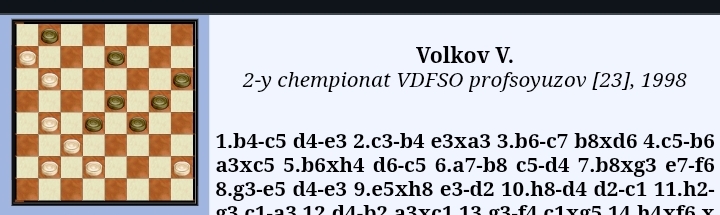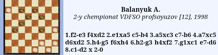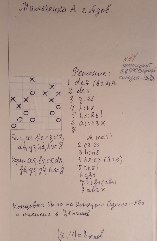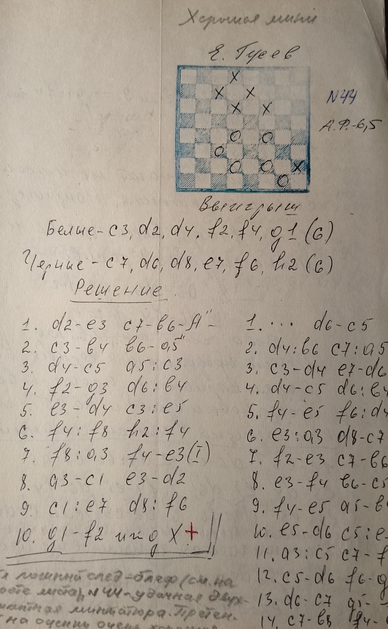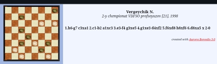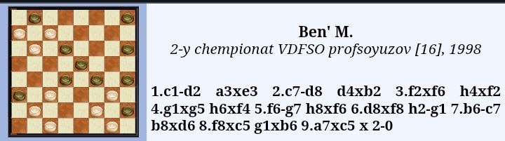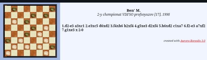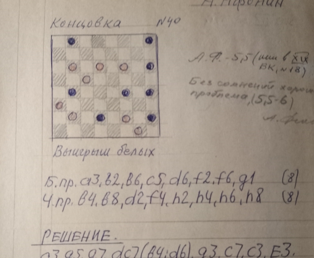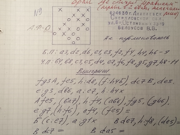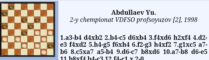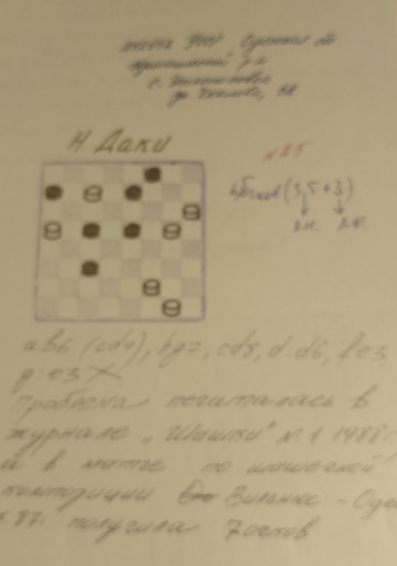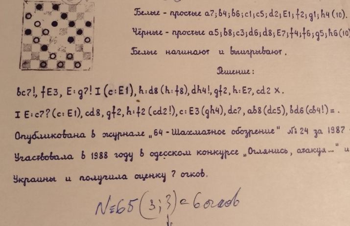 This is a copy of the Yu. Cherniaev etude from "Dambrete"-mag. , No. 8 , 1977