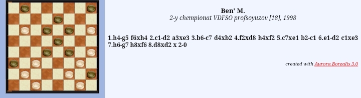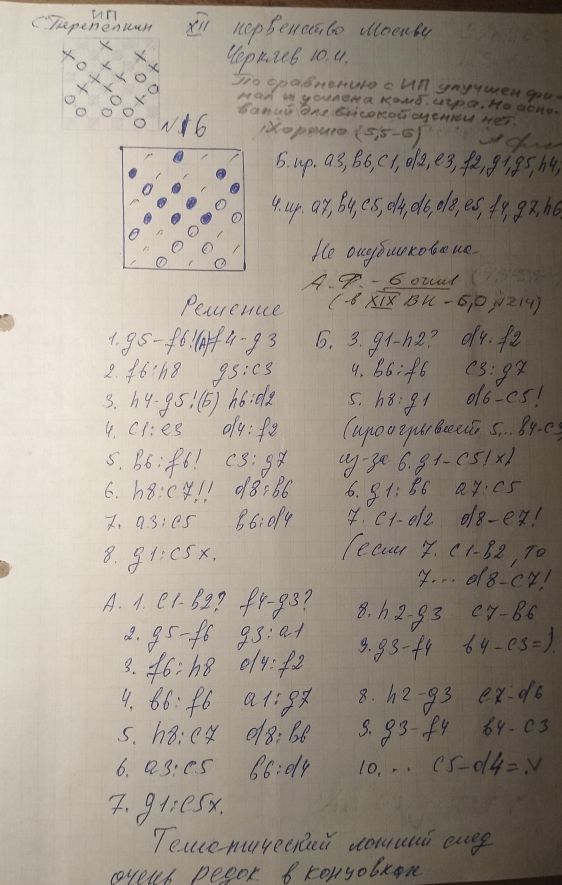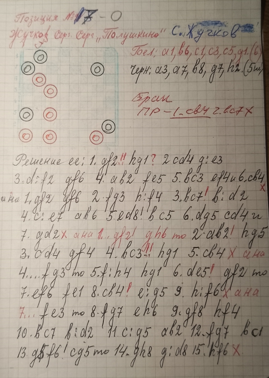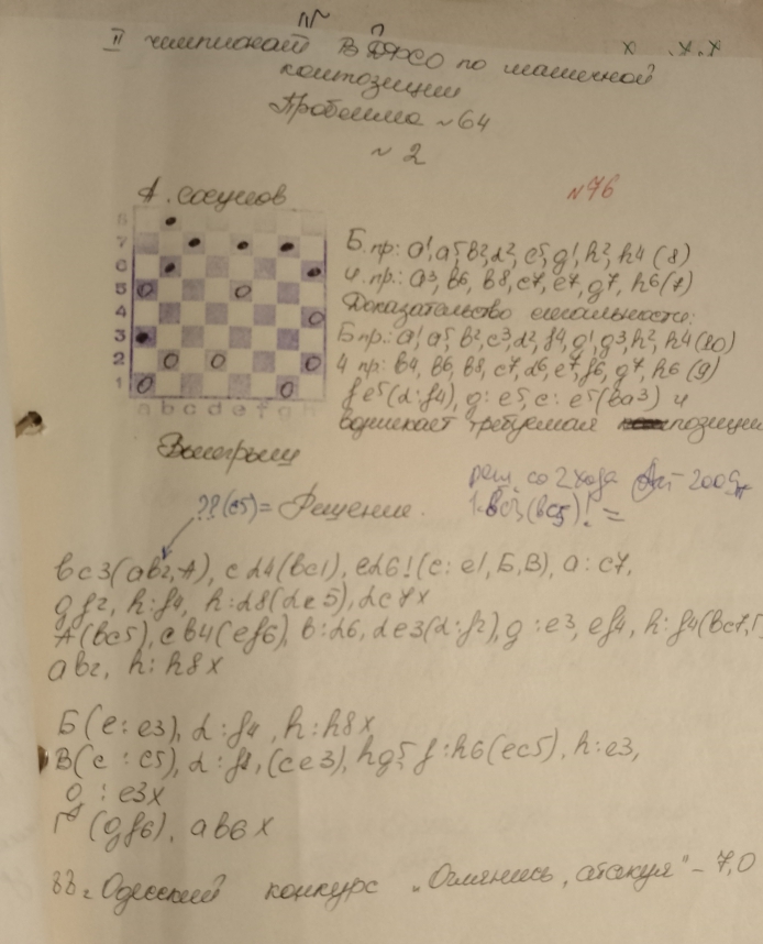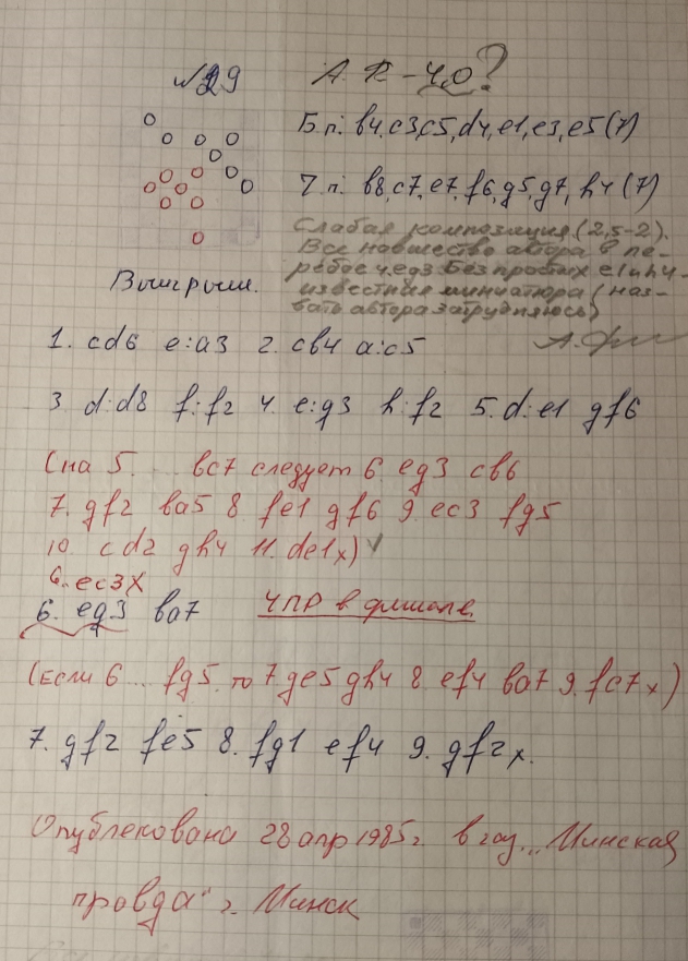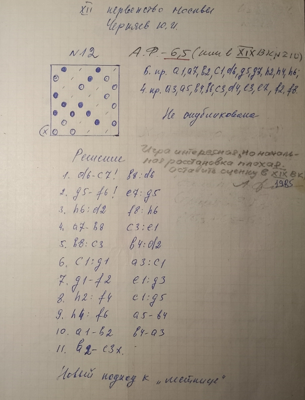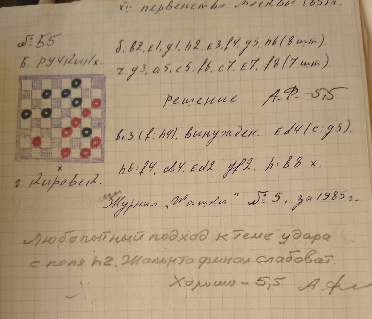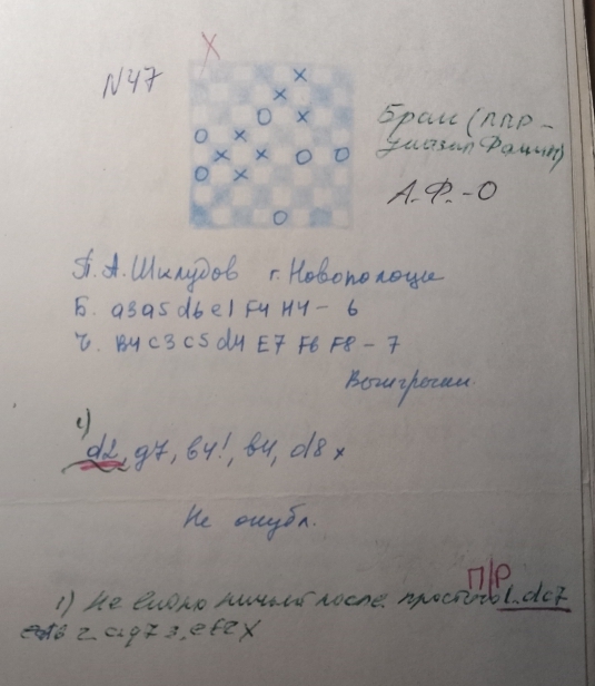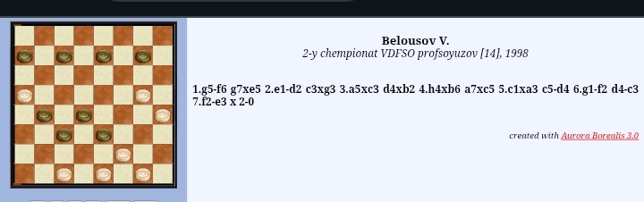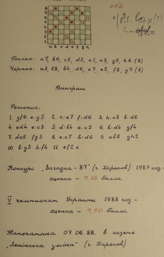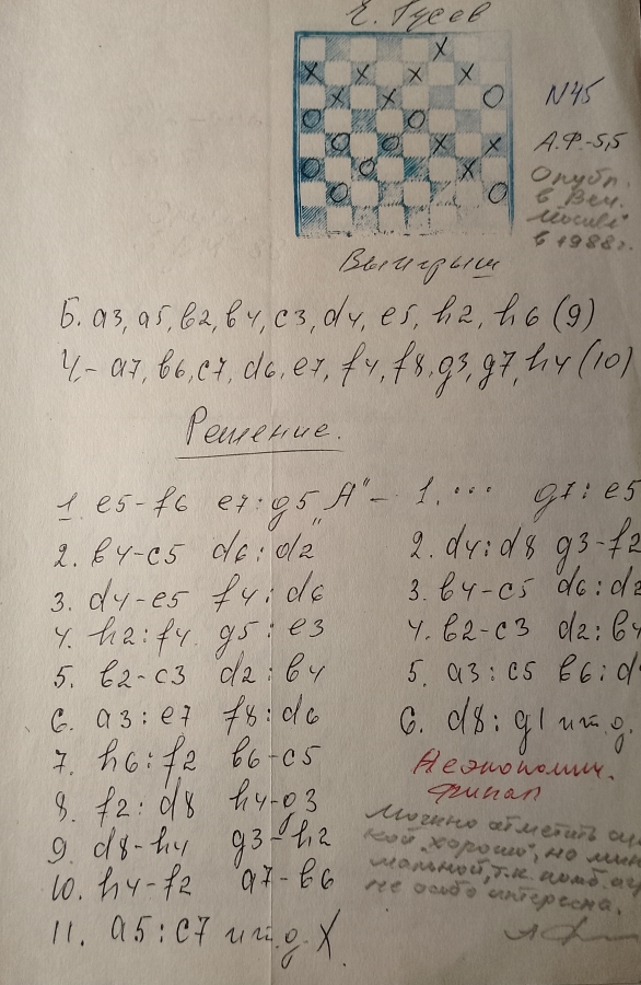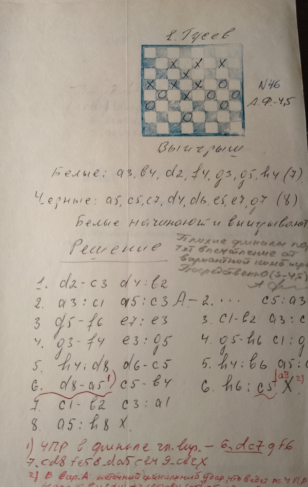 This is a copy of the Yu. Cherniaev etude from "Dambrete"-mag. , No. 8 , 1977