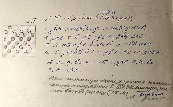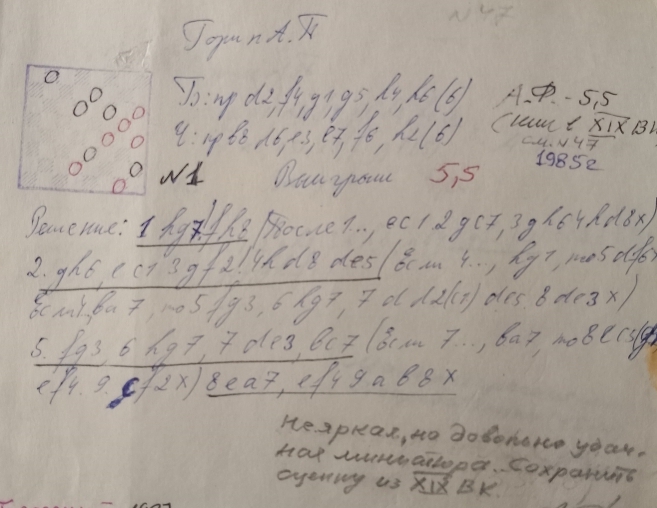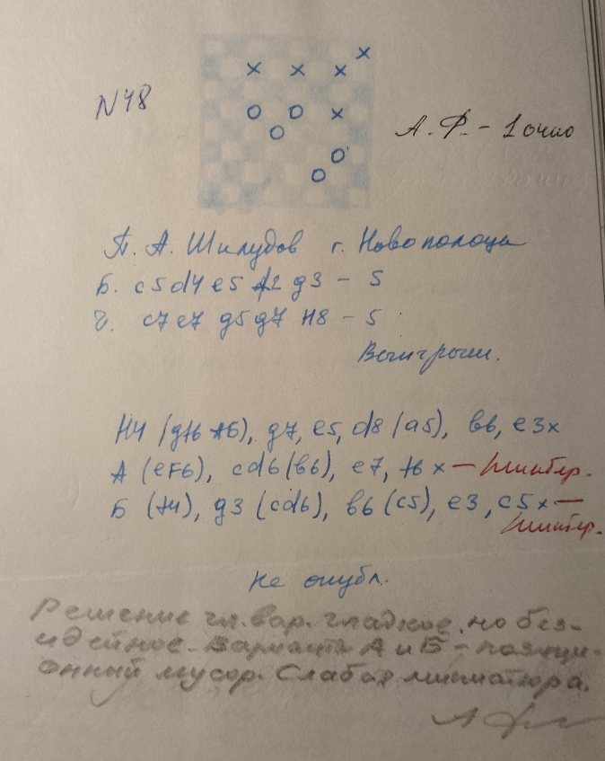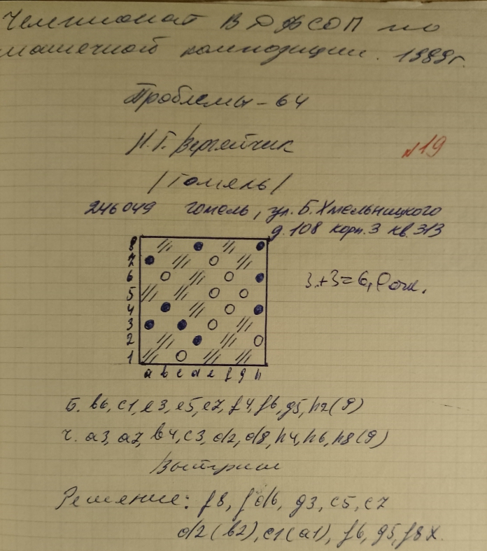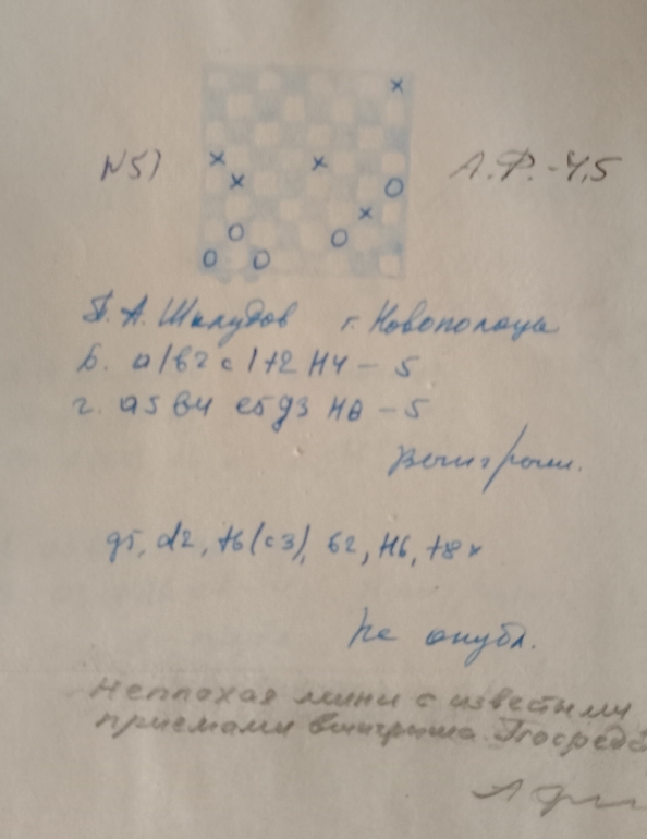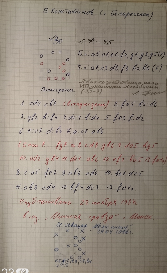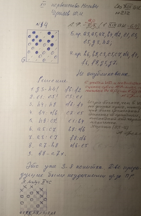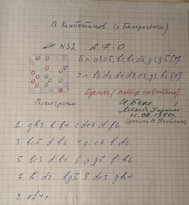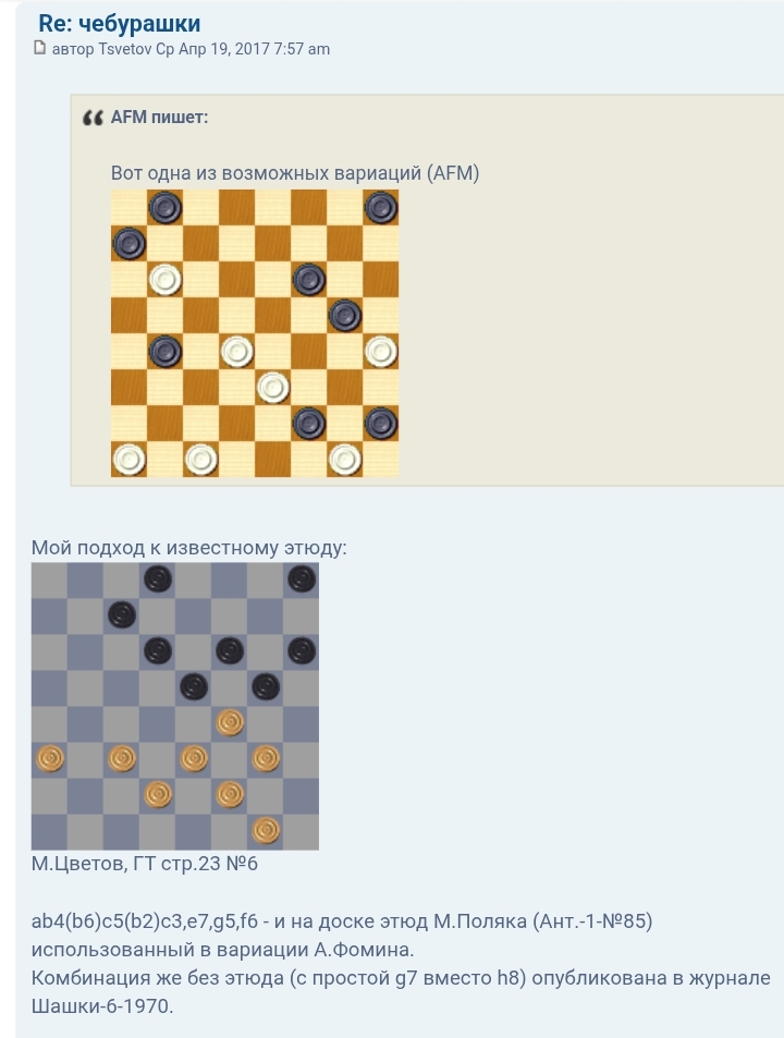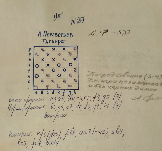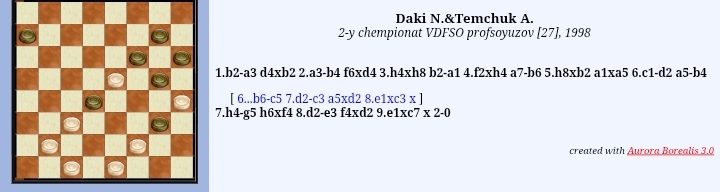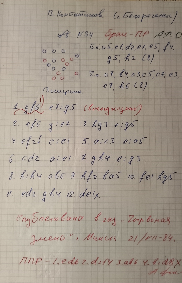 This is a copy of the Yu. Cherniaev etude from "Dambrete"-mag. , No. 8 , 1977