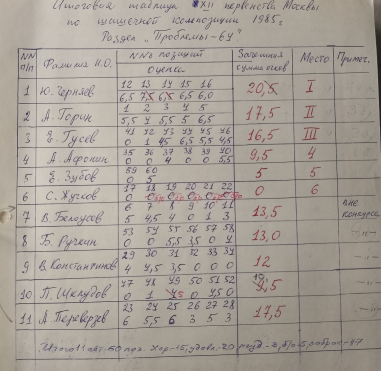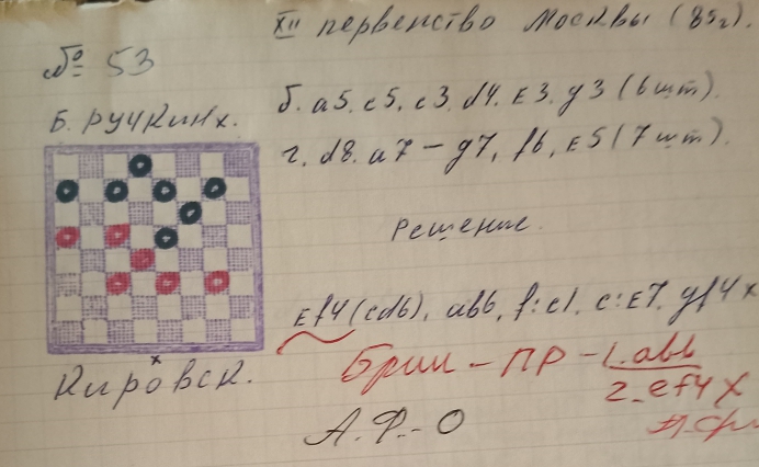 Results of the 9th Moscow Championship on draughts composition in the section "Etudes-100" (by A. Fedoruk).