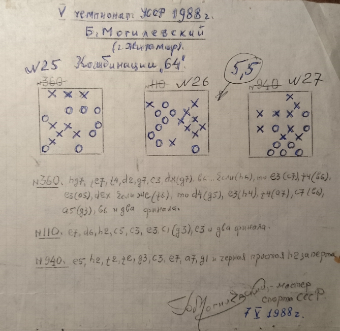 Selected compositions of the 5th Ukrainian Championship-64-1988 on composition of draughts(sections :"problemy", " Etudi
