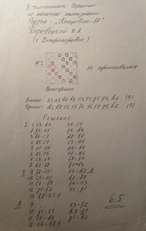 Re: XIII -th Moscow championship in draughts composition , section "problemy - 100 "