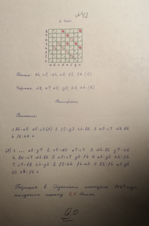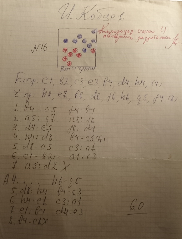 This is one of the works of a frequent participant in Moscow championships on composition of draughts .For ethical reasons, we will not give his name here.