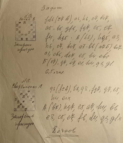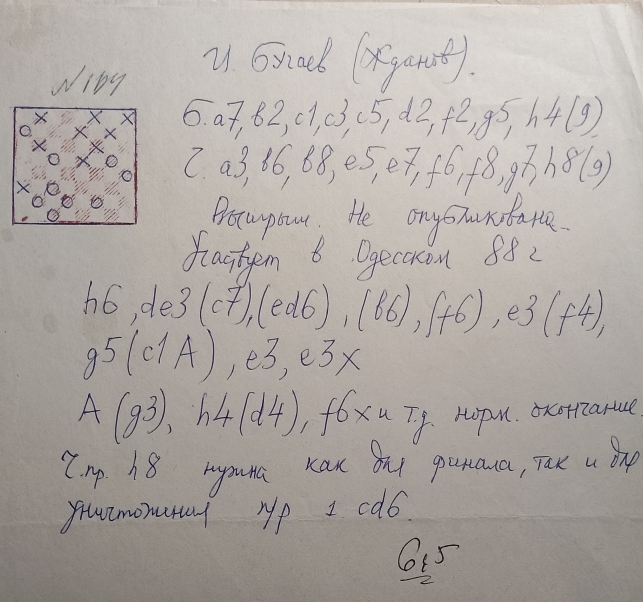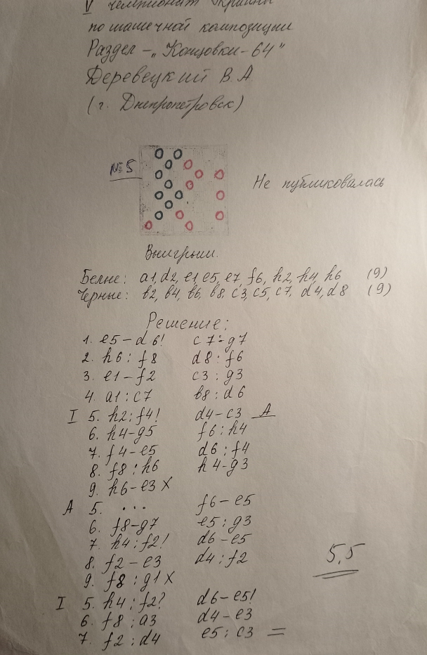 A 1...cd6 2.b:e5 ab2 3.ed6 4.e:c1 -M.Tsvetov gf4 5.cd2 6.h:f2 x.