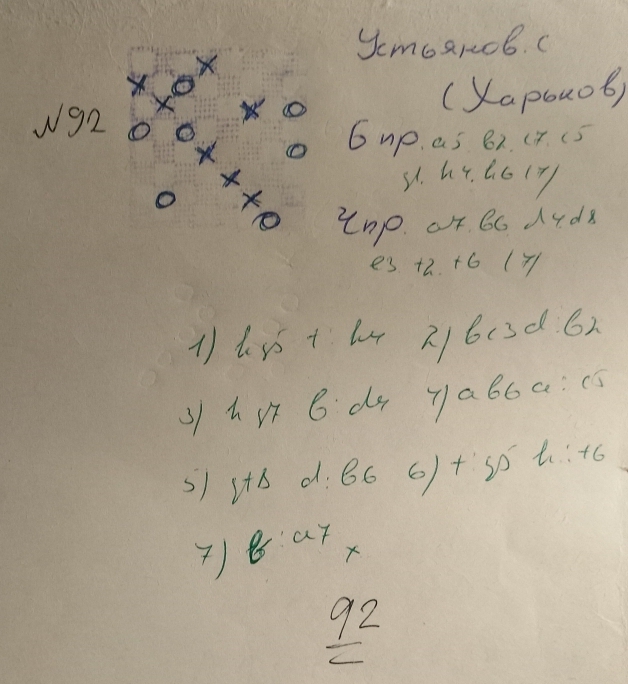 In the 7th USSR championship in draughts composition, 1990 the "problema" by S. Khottabychev was participated, that received a score of 0 points.