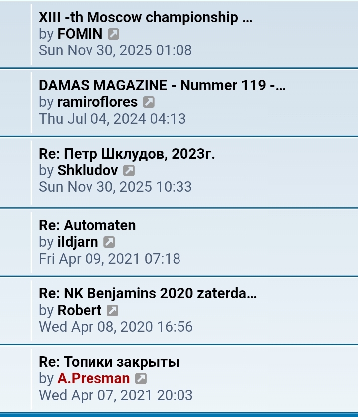 Down with russian-speaking impostor P. Shkludov, who constantly rapes the English section of the checkers forum with his posts in russian on its main page by blocking messages from European users who don't know Russian.