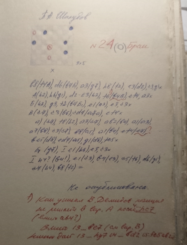 It is also quite likely that the Plagiarist spied on the old idea of ​​a strike from the cell " c3 " by the master Anatoly Kovrizhkin (the book of the author "combinations on a hundred-celk board, "Moscow, Physical Culture and Sport, 1963).