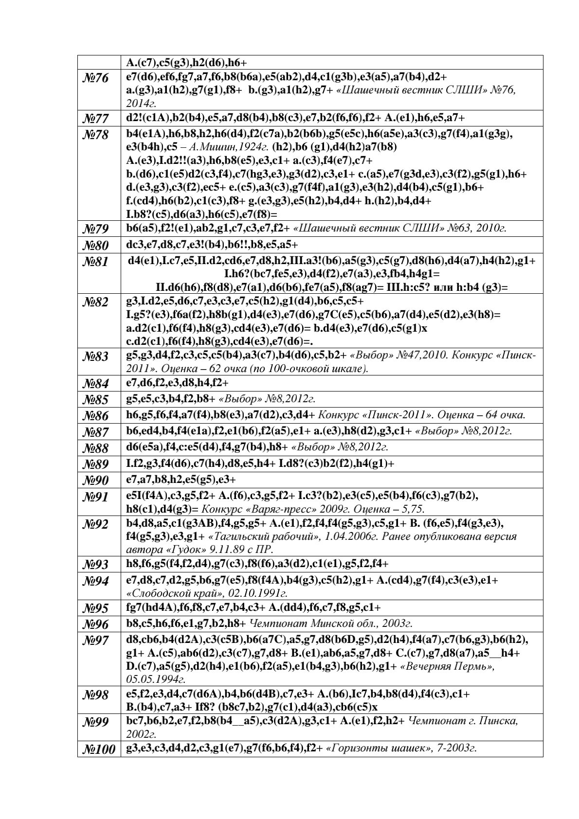 Results of the 9th Moscow Championship on draughts composition in the section "Etudes-100" (by A. Fedoruk).