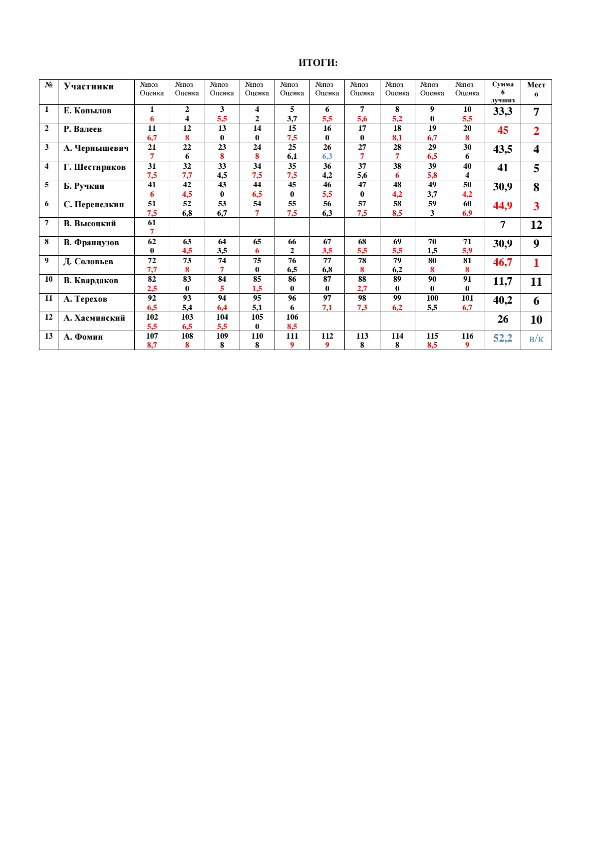 Results by Judge L. Vitoshkin