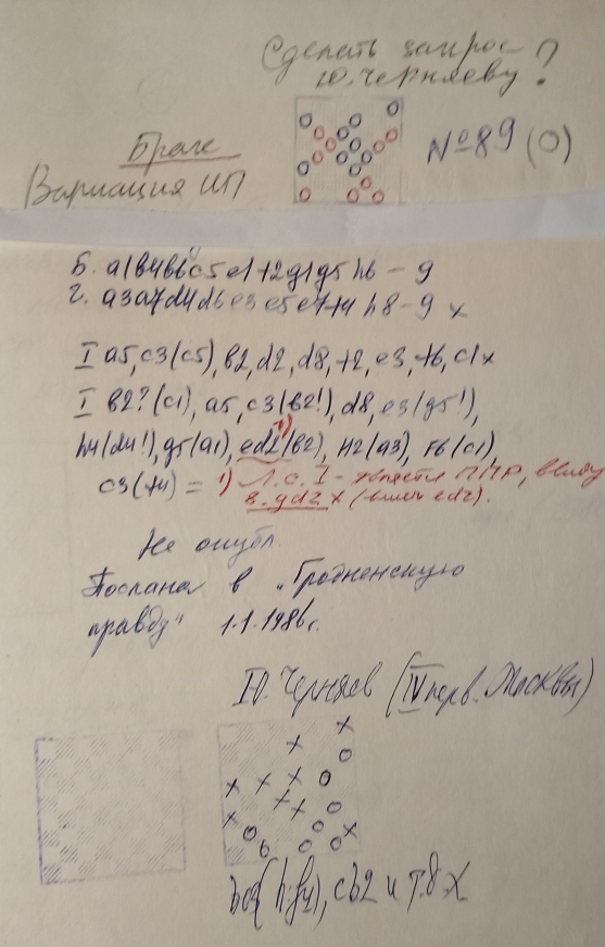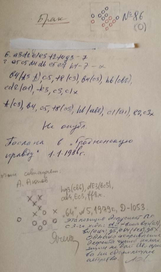 Here is another remake of someone else's work, for which its author received zero points in the 13th Moscow Championship in 1986.