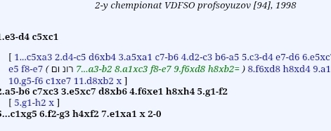 de3, e3 (f6), g4(g5) a, fe5 (f4), g3, , d2 (e7), f2(cd6), fe3(g3), f4 d8, e3, d4, f6, c2 x