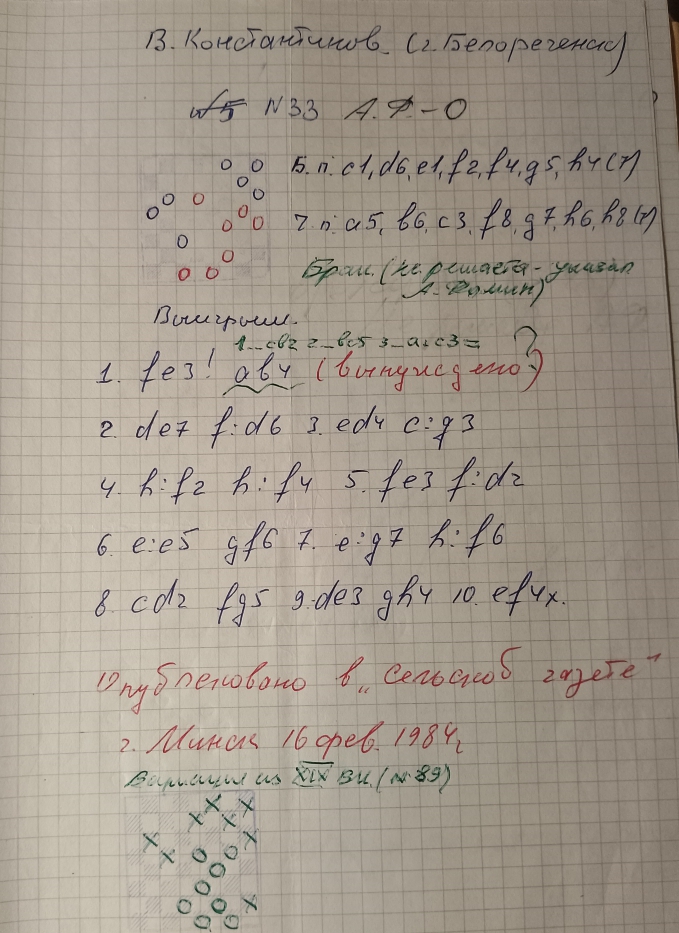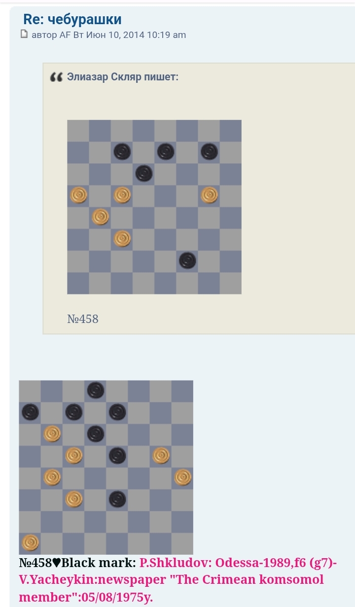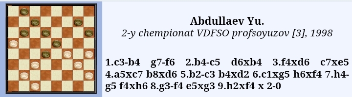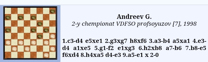 This is a copy of the Yu. Cherniaev etude from "Dambrete"-mag. , No. 8 , 1977